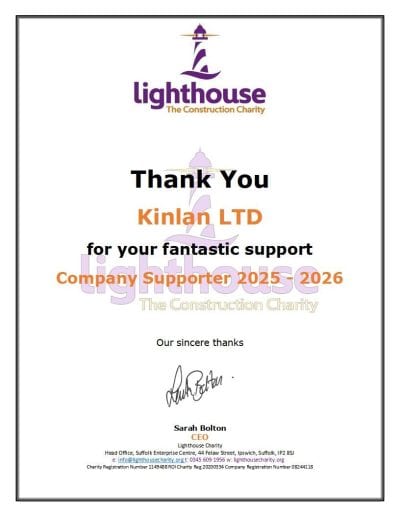 Weβre delighted to share that Kinlan Brickwork will be supporting The Lighthouse Charity for another year, continuing our commitment as a Company Supporter for 2025β2026 ππ»