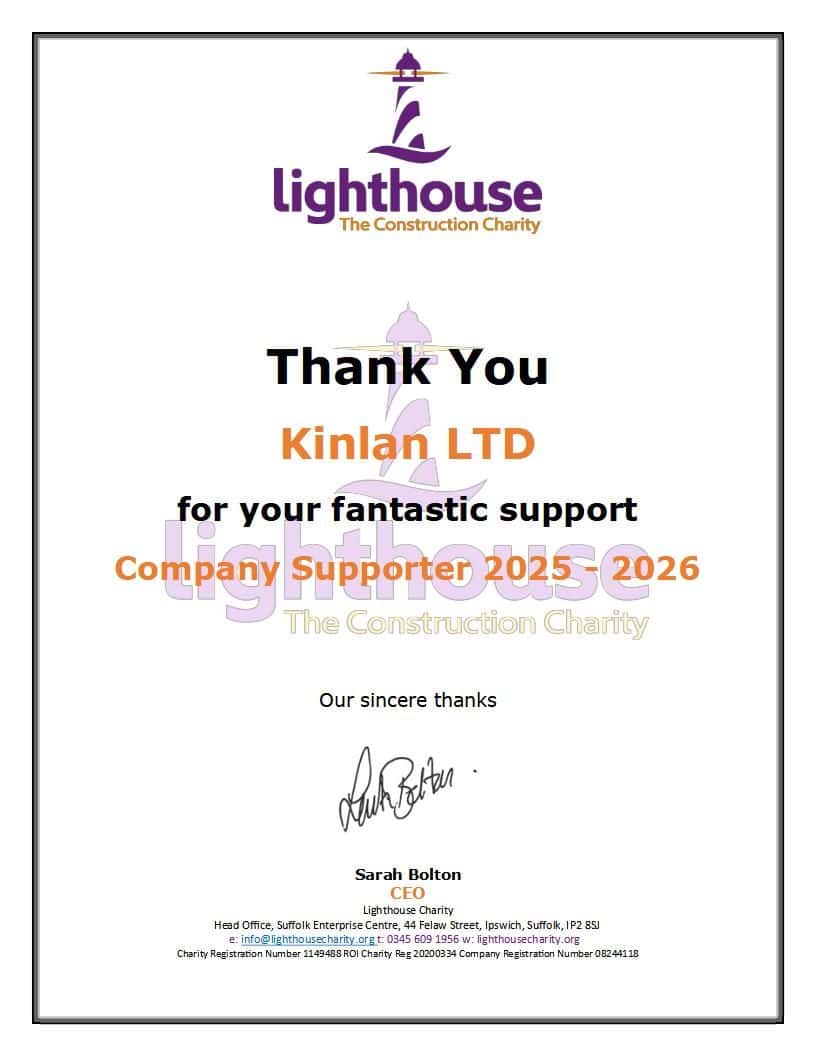 We’re delighted to share that Kinlan Brickwork will be supporting The Lighthouse Charity for another year, continuing our commitment as a Company Supporter for 2025–2026 πŸ‘πŸ»
